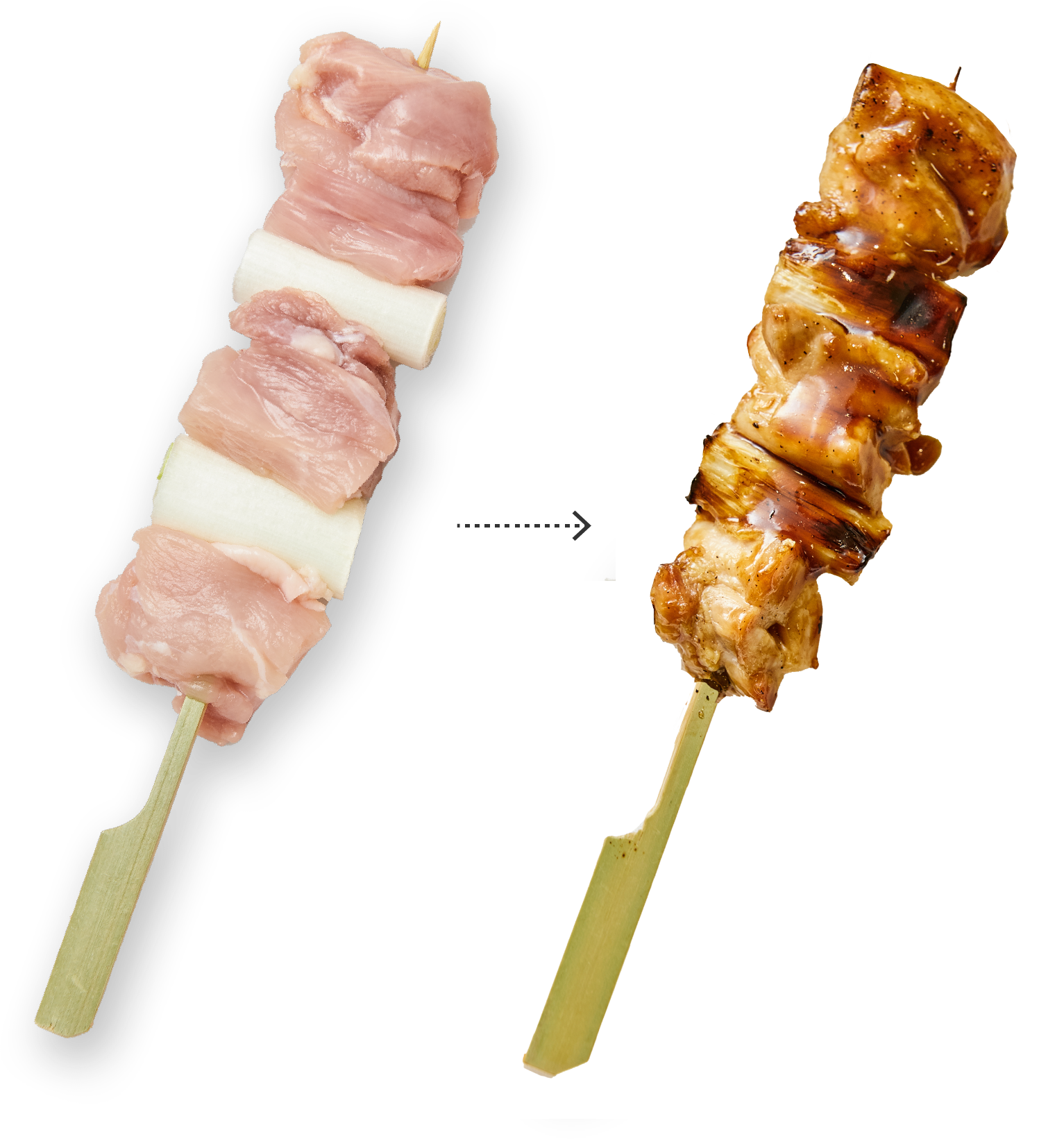 食品工房ナカムラフーズは、焼鳥の美味しさを最大限に引き出すために、串打ちを全て手仕事で行う“手打ち焼鳥” にこだわり続けています。熟練の職人が長年培ってきた技と経験を活かし、一本一本手仕事で丁寧に作り上げていきます。